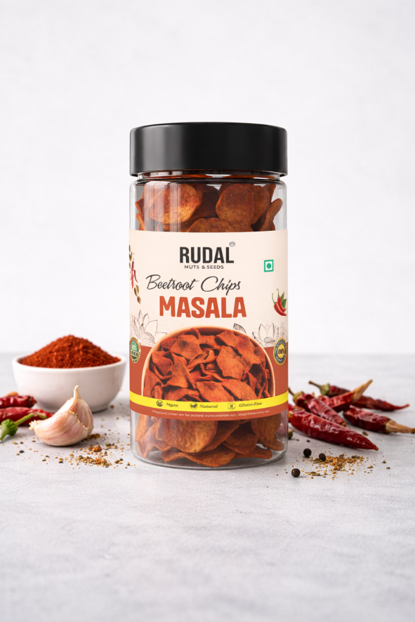 Beetroot, Urad Dal Flour, Tapioca Starch, Rice Flour ,Rice Bran Oil, Spices& Condiments (Red chilli, Dried Onion flakes, Dried Garlic, Cumin, Dried Mango Slice, Clove, Coriander seeds, Dried Ginger, Fennel Seeds, Big Cardamom) Edible Salt, Sugar, Acidity Regulator (INS 330)&(INS 296),Hydrolysed Vegetable Protein(Peanut), Colour (INS 160c), Flavour Enhancer (INS 627) & (INS 631), Contains added Natural and Nature Identical Flavouring Substances.